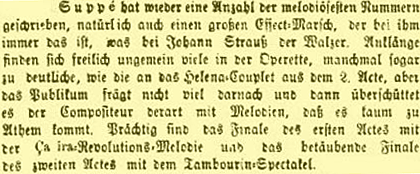 Leider ist keiner der hier in der Kritik der Wiener Sonntag-Montag Zeitung vom 22.02.1880 hervorgehobenen Musiktitel in der St. Petersburger Aufführung enthalten.