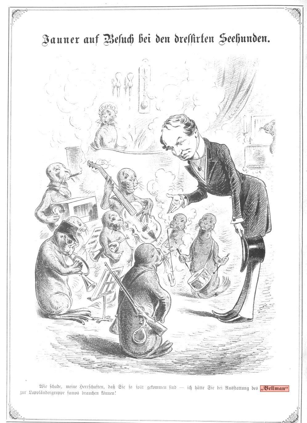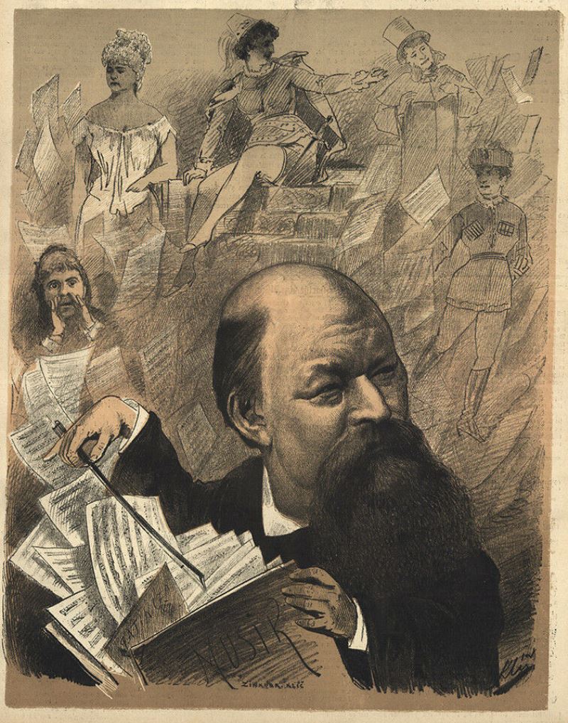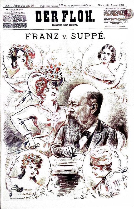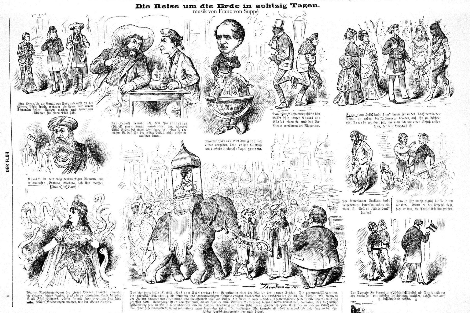 Karrikaturblatt zur Erstproduktion im Cartheater 1876.